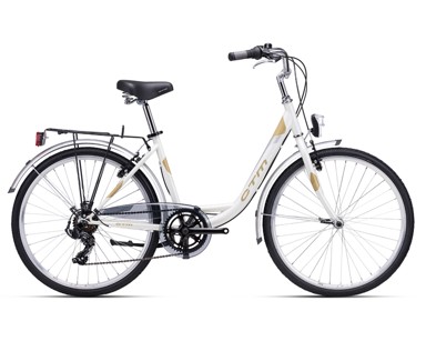 CTM Olivia 2.0 gradski je bicikl dizajniran za svakodnevne vožnje i gradske avanture. Opremljen Shimano mjenjačem s 6 brzina, V-brake kočnicama i laganim kotačima s pouzdanim Mitas gumama, omogućuje udobnu i sigurnu vožnju. Prowheel pogon, udobno sjedalo i klasičan dizajn čine ga odličnim izborom za sve žene koje traže jednostavan i funkcionalan gradski bicikl.
