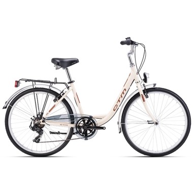 Gradski bicikl brenda CTM s donjom ramom pruža moderan i stabilan dizajn za svakodnevnu vožnju. Opremljen je gumama promjera 26 incha koje omogućuju sigurnu i udobnu vožnju po gradskim ulicama. S 6 brzina lako prilagođava tempo i uvjete na cesti, a elegantna bijela boja daje mu profinjen i atraktivan izgled.
