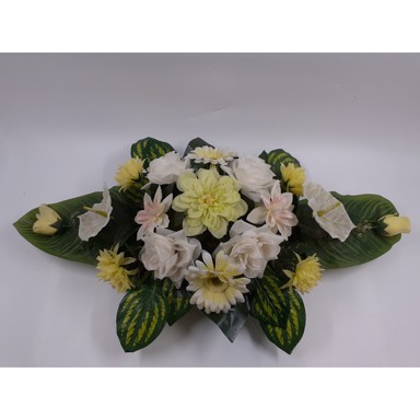 Cvjetni aranžman Tina Lena, dimenzija 88x44x18 cm, elegantan je izbor za ukrašavanje groblja. Izrađen od visokokvalitetnih umjetnih cvjetova koji spajaju klasične i moderne nijanse, simbolizira mir i poštovanje. Zahvaljujući izdržljivim materijalima, aranžman zadržava svoju ljepotu i oblik unatoč vanjskim uvjetima, pružajući dugotrajno rješenje za dostojanstvenu dekoraciju. Jednostavan za postavljanje, savršeno izražava ljubav i sjećanje.