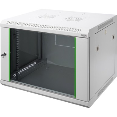 Zidno kućište iz serije Dynamic Basic dizajnirano je za EDP i telekomunikacijske aplikacije. Izrađeno od čeličnog lima s mogućnošću uklanjanja bočnih dijelova, opremljeno je 483 mm (19") profilnim šinama koje se mogu prilagoditi po dubini. Kućište uključuje sigurnosna staklena vrata, kabelske ulaze s gumenim brtvama na gornjoj i donjoj strani, te 3 uzemljenja za siguran rad. Idealno za instalaciju na zid u manjim prostorima.