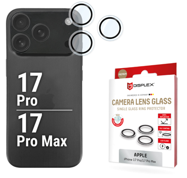DISPLEX Premium Camera Lens Glass štiti svaku leću vašeg iPhone 17 Pro/17 Pro Max pomoću ultra tankih 10H kaljenih staklenih prstena ojačanih DLC (Diamond-Like Carbon) premazom otpornim na ogrebotine.