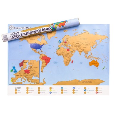 Karta svijeta "Ogrebi me" omogućava zabavu i učenje, jer djeca mogu ogrebati zemlje koje su posjetili. Sadrži i popis mjesta koja treba vidjeti u Europi, a dolazi u elegantnom pakiranju, spremna za poklon.
