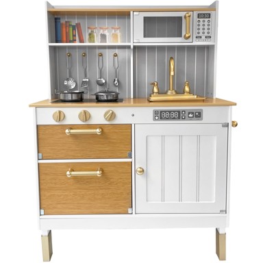 Velika drvena kuhinja za djecu LittleChef – smeđa, s priborom Ukupna visina: 93,5 cm Visina od poda do ploče stola: 57-58,5 cm (ovisno o tome kako su umetnute ... Pročitaj više