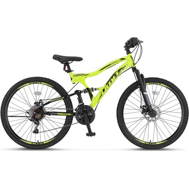 Albatros 24 V21 bicikl u upadljivoj žutoj boji opremljen je Shimano mjenjačem s 21 brzinom i prednjom te stražnjom suspenzijom za ugodnu vožnju na svim terenima. Čelična rama daje čvrstoću, dok V-brake kočnice omogućuju sigurnost, čineći ga savršenim izborom za mlade bicikliste koji žele ozbiljniji bicikl za gradsku i terensku vožnju.