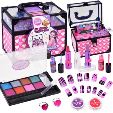 Kovčeg za kozmetiku sadrži plastičnu kutiju za pohranu s mogućnošću zaključavanja i raznovrsne kozmetičke proizvode poput ruževa, lakova za nokte i sjajila. Uz dodatke kao što su prstenje i paleta sjenila, djevojčice mogu uživati u kreativnoj igri uljepšavanja. Komplet dolazi s malim priborom za stiliziranje.