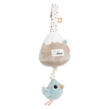 Mekana glazbena igračka Birdee osmišljena je kako bi pružila osjećaj sigurnosti i smirenosti prilikom uspavljivanja ili presvlačenja. Pri povlačenju, simpatična ptica s koraljnim nogama polako izranja ispod sive planine s bijelim vrhom, dok svira poznata uspavanka “Over the Rainbow”.