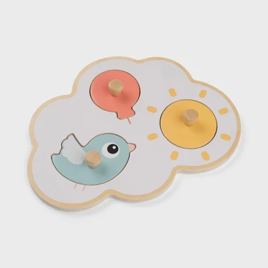 Slagalica za mališane, sa preslatkom ptičicom Birdee, prekrasnim balonom i sjajnim suncem, marke Done by Deer. Jednostavni oblici idealni su za bebe. Drveni gum... Pročitaj više