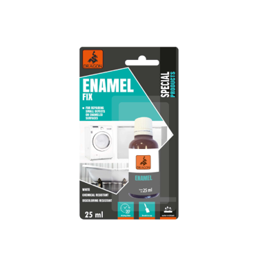 DRAGON emajl za kade u pakiranju 25 ml namijenjen je trajnim popravcima sitnih oštećenja poput strugotina i ogrebotina na emajliranim površinama. Ostavlja gotovo nevidljiv trag te daje dugotrajan i izdržljiv sjajni završni premaz na različitim podlogama. Primjenjuje se na kada, dječje bazene, perilice rublja, hladnjake, peći i slične emajlirane površine, uz otpornost na vodu i određene kemikalije.