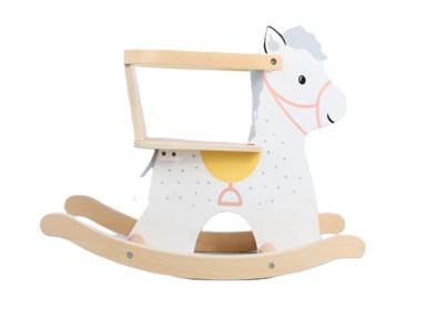 Drveni konjić za ljuljanje sa zaštitnom ogradom pruža sigurnu igru i potiče osjećaj ravnoteže.