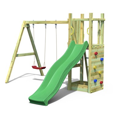 Kompaktno igralište dimenzija 289 × 82 × 210 cm s KDI impregnacijom idealno je za manje prostore, uključuje tobogan od 2,2 m, zid za penjanje, metalne ljestve, ručke, sidra i alat za montažu. Platforma je visoka 125 cm, a maksimalni broj korisnika je 5. Drvo je zaštićeno od vlage, a preporučuje se redovito održavanje lazurnim premazom.