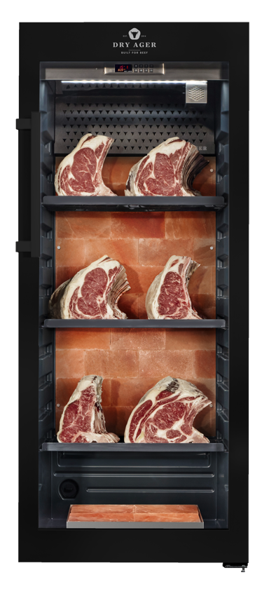 Uz pomoć DRY AGING BIBLE, koja nudi više od 300 stranica stručnih informacija, potpuno ste upućeni u proces. Tehnički, uređaj ima čelično kućište i vrata u mat crnoj boji. Temperaturni raspon je elektronički podesiv od 0 °C do +30 °C, a vlažnost se može regulirati od 40% do 90%. Uređaj je opremljen DX LED Premium rasvjetom s kontinuiranim zatamnjivanjem i omogućuje punjenje do 100 kg hrane.