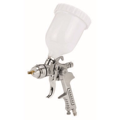 Profesionalni pištolj za raspršivanje boje s gravitacijskom posudom je robustan i precizan radni alat za izazovne poslove lakiranja s radnim tlakom od 3 do 3,5 bara. Vrlo dobar standard kvalitete bojenja postiže se zahvaljujući solidnoj izradi i preciznoj, čistoj obradi.