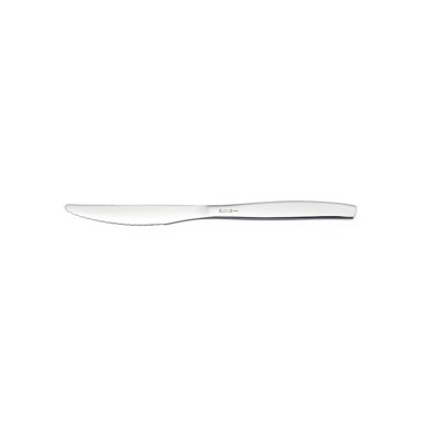 Set od 2 moderna nazubljena noža Shark, duljine 22,7 cm, izrađena od nehrđajućeg čelika debljine 2 mm. Zrcalno polirana površina, ergonomska drška i lako održavanje – praktični za svakodnevni stol.