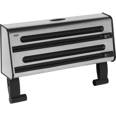 EMSA CONTURA rezač folije od nehrđajućeg čelika omogućuje jednostavno i čisto rezanje prijanjajuće folije, aluminijske folije i drugih materijala. Siguran je za uporabu zahvaljujući pokrivenim kotačićima za rezanje, reže u oba smjera i sadrži odvojivi držač role, a duljine je 41 cm za maksimalnu praktičnost.