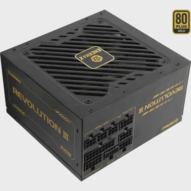 ENERMAX napajanje Revolution III 850W (1x 12-pin GPU, 3x PCIe, modularno, crna) donosi 80 PLUS Gold učinkovitost, ATX 3.1 kompatibilnost, visoku pouzdanost zahvaljujući japanskim kondenzatorima te tih i učinkovit FDB ventilator uz bogat skup zaštita.