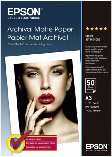 EPSON Foto papir ARCHIVAL MATTE PAPER A 3, 50 kom. nudi visokokvalitetnu podlogu za dugotrajne i precizne ispise... Pročitaj više