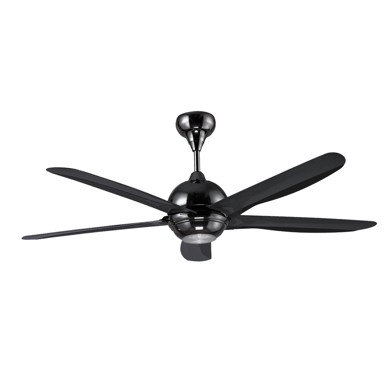Željezni crni ventilator s pet lopatica s dijelovima od ABS plastike i akrila. Prema potrebi može vrtiti hladan ili topal zrak. Dolazi s daljinskim upravljačem. Boja rasv... Pročitaj više