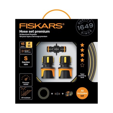 FISKARS Premium navodnjavanje Kit kompletan je set za učinkovito i praktično zalijevanje vrta i travnjaka. Sadrži visokokvalitetne dijelove koji olakšavaju postavljanje i dugotrajnu upotrebu sustava za navodnjavanje.