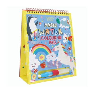 FLOSS & ROCK Čarobna vodena bojanka Rainbow Fairy donosi šest živopisnih listova za višekratno bojanje i posebnu vodenu olovku. Kompaktna veličina i spiralni uvez s ugrađenim stalkom omogućuju jednostavno korištenje gdje god se nalazili, dok se ilustracije obnavljaju nakon sušenja.