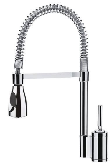 Franke Joy Cocktail Doccia kuhinjska miješalica - krom, karakterizira se bazom promjera 50 mm, poluprofesionalnom miješalicom s podesivim dvostrukim mlaznim tušem, rotacijom cijevi od 360°, izljevom tuša i keramičkim uloškom promjera Ø35.