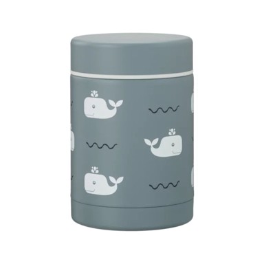 Praktična Fresk termo posuda s motivom kitova idealna je za djecu, posebno dječake, koji vole nositi svoje omiljene obroke sa sobom u školu ili na izlete. Zapremnina posude je 300 ml, dovoljno za obrok koji će ostati topao do 6 sati ili hladan do 8 sati. Izrađena je od 100% nehrđajućeg čelika bez unutarnjeg premaza, što osigurava dugotrajnost i sigurnost. Posuda nije prikladna za mikrovalnu pećnicu ni perilicu posuđa, stoga se preporučuje ručno pranje. Bez BPA, sigurna i pouzdana za svakodnevnu upotrebu.