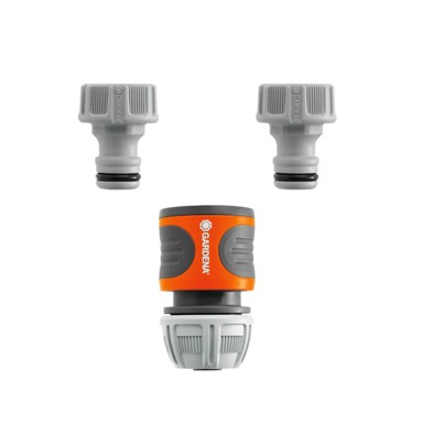 Gardena komplet za priključak sadrži dva navojna priključka za slavinu. Ovi priključci olakšavaju brzo priključivanje na slavinu i jednostavno odvajanje crijeva bez upotrebe alata. Prikladan je za crijevo promjera 13 mm (1/2") i 15 mm (5/8"). Uz lako montiranje i visoku funkcionalnost, ovaj komplet čini zalijevanje vrta jednostavnim i učinkovitim.
