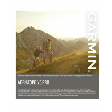 GARMIN Topografska karta AdriaTopo v5 PRO voucher namijenjena je planinarenju, biciklizmu i outdoor istraživanju balkanskih zemalja, s detaljnim prikazom terena i velikim brojem točaka interesa, uz podršku za planiranje i prilagodbu ruta te kompatibilnost s BaseCamp softverom za jednostavniju pripremu avantura i prijenos podataka na kompatibilne Garmin uređaje.