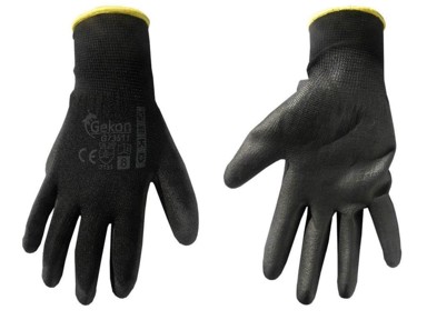 Radne rukavice Geko veličine 8 izrađene su od bešavnog materijala obloženog PU slojem koji osigurava izvrsno prijanjanje i osjetljivost pri radu. Fleksibilne i lagane, pogodne su za precizne zadatke u industriji i radionici.