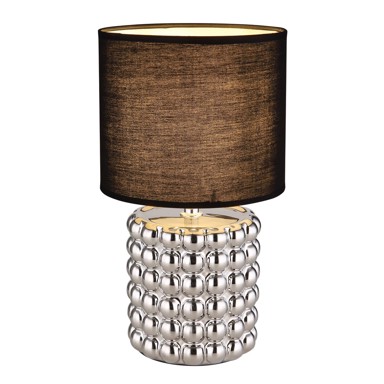 Lampa s oblikovanom nožicom od kromirane keramike u obliku cilindra savršeno se uklapa u svaki interijer. Sjajno crno tekstilno sjenilo pruža elegantan kontrast, dok E14 utičnica omogućava odabir boje i jačine svjetlosti do 40 W.