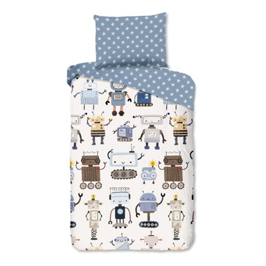 Plava/bež pamučna dječja posteljina za krevet za jednu osobu 140x200 cm Robo – Good Morning osigurava mekan i udoban pamučni materijal, dok motiv Robo unosi zabavu i tehn… Pročitaj više