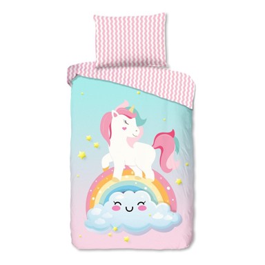 GOOD MORNING Pamučna dječja posteljina za krevet za jednu osobu 140x200 cm Sweety ružičasta/tirkizna