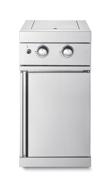 Samostojeći modul s dvostrukim bočnim plamenikom od nehrđajućeg čelika 304 širi mogućnosti svake vanjske kuhinje. Dva odvojena plamenika (2 × 3,2 kW) omogućuju kuhanje priloga, umaka i woka paralelno s glavnim jelom. Kromirani upravljački gumbi, piezo paljenje i posuda za skupljanje masti pojednostavljuju rukovanje i čišćenje. Četiri kotača s kočnicama te ormarić za bocu i pribor donose mobilnost i urednost, uz dizajn koji se skladno kombinira s ostalim modulima.