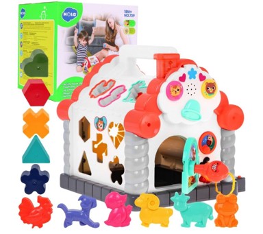 Kuća ima četiri interaktivne bočne ravnine, te dvije krovne kosine. Čvrsta izrada i jarke boje privlače pažnju. Životinjske rupe na krovu završene su zaštitnim omotom u boji koji odgovara boji bloka. Nakon pravilnog postavljanja ljubimca iz kuće izlazi pravi zvuk i dimnjak sija.