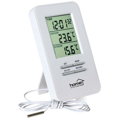 Uživajte u preciznom praćenju vremenskih uvjeta s HOME Vremenskom stanicom HC 12, idealnim rješenjem za svaki dom. Ova moderna vremenska stanica omogućuje vam da lako pratite vanjske temperature u rasponu od -50 do +70 °C, kao i unutarnje temperature od -9 do +50 °C. Opremljena je žičnom sondom za mjerenje vanjske temperature dužine 1,4 metra, što osigurava točne mjere bez obzira na uvjete.
