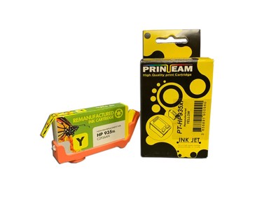 HP zamjenska tinta 935XL, žuta, kapaciteta 825 stranica, kompatibilna je s modelima HP OfficeJet Pro 6230 i HP OfficeJet Pro 6830. Podržava sve firmware.