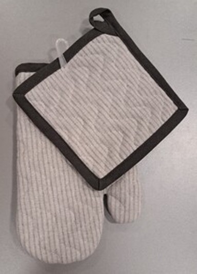 Praktičan set od dvije kuhinjske tkanine u sivoj boji pruža pouzdanu sigurnost i dugotrajnu upotrebu. Pamučna tkanina olakšava čišćenje, dok neutralna nijansa i printani detalji stvaraju elegantan i svestran dodatak kuhinjskom prostoru.