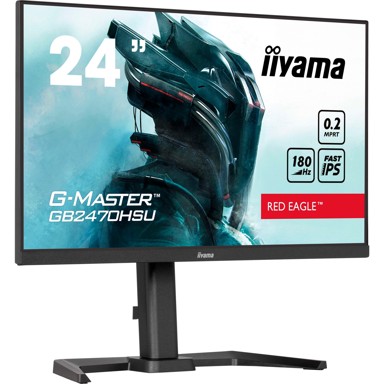 IIYAMA gaming monitor G Master GB2470HSU B6 Red Eagle omogućava maksimalne gaming performanse na 24" ekranu s IPS tehnologijom. S brzinom odziva od 0,2 ms MPRT i 180 Hz brzinom osvježavanja, svaki trenutak igre bit će glatki i bez zamućenja. Uz Adaptive Sync tehnologiju, možete se opustiti jer nećete imati problema s tearingom i stutteringom, a visoka preciznost boja čini svaku igru živopisnom i realističnom.