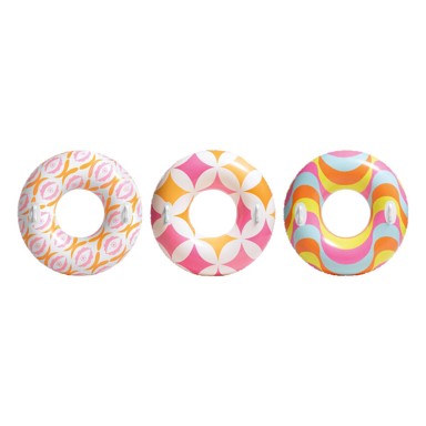 Napuhavajući prsten za plivanje Intex promjera 114 cm izrađen je od vinila debljine 0,25 mm i opremljen je s dvije ručke radi lakšeg držanja. Prsten je namijenjen za korištenje na plaži ili u bazenu i podržava maksimalnu težinu od 100 kg. Uz prsten dolazi i set za popravak. Preporučena dob korisnika je od 9 godina naviše.