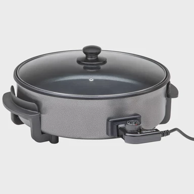 ISKRA Električna tava EPP-34-A pruža praktičnost i učinkovitost u vašoj kuhinji s nizom korisnih značajki. Opremljena potpuno staklenim poklopcem, omogućuje vam lako praćenje procesa kuhanja bez gubitka topline ili vlage.