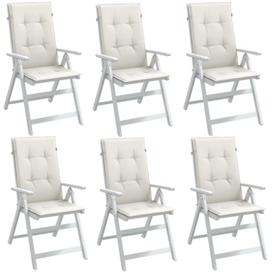 Pružite svom vanjskom prostoru za boravak svjež izgled u trenu uz ove udobne jastuke za stolice s visokim naslonom! - Izdržljiv materijal: Poliester je sintetički materijal poznat po svojoj otpornosti na UV zračenje i zateznoj čvrstoći. - Meko punjenje: Vanjski jastuk punjen je pjenastim vlaknima za iznimno mekanu i optimalnu udobnost pri sjedenju. Ovaj jastuk za stolicu vraća se u izvorni oblik nakon svake upotrebe. - Široka primjena: Jastuk je prikladan za vanjsku upotrebu, primjerice na vrtnom i namještaju za terasu, ali se također može upotrebljavati u zatvorenom prostoru kao podloga za obiteljsku ili uredsku stolicu. Također je prekrasan ukras koji daje vašem domu svjež izgled. - Dizajn koji ne klizi: Pažljivo dizajnirane vezice i elastična traka za naslon olakšavaju pričvršćivanje jastuka na namještaj i drže ga uredno i čvrsto na mjestu. Dobro je znati: Proizvod je pakiran pod vakuumom, stoga mu je potrebno neko vrijeme da se proširi i vrati u prvobitni oblik. - Boja: Prošarano krem - Materijal: Tkanina (100 % poliester) - Materijal punjenja: Pjenasta vlakna - Dimenzije (svakog): 120 x 50 x 4 cm (D x Š x Deb.) - Duljina vezice (svake): 30 cm - S 1 elastičnom trakom i 2 seta vezica - Prikladno za stolice s visokim naslonom - Isporuka sadrži: - 6 x jastuk