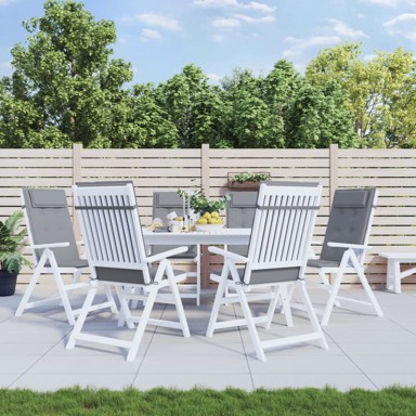 Pružite svom vanjskom prostoru za boravak svjež izgled u trenu uz ove udobne jastuke za stolice s visokim naslonom! - Izdržljiv materijal: Tkanina Oxford lagana je, vodootporna i također otporna na oštećenja i prljavštinu. Zbog pređe upotrijebljene za tkanje, ova tkanina izdržljiva je i prozračna. Također je prirodno otporna na nabore. - Meko punjenje: Vanjski jastuk punjen je pjenastim vlaknima za iznimno mekanu i optimalnu udobnost pri sjedenju. Ovaj jastuk za stolicu vraća se u izvorni oblik nakon svake upotrebe. - Široka primjena: Jastuk je prikladan za vanjsku upotrebu, primjerice na vrtnom i namještaju za terasu, ali se također može upotrebljavati u zatvorenom prostoru kao podloga za obiteljsku ili uredsku stolicu. Također je prekrasan ukras koji daje vašem domu svjež izgled. - Dizajn koji ne klizi: Pažljivo dizajnirane vezice i elastična traka za naslon olakšavaju pričvršćivanje jastuka na namještaj i drže ga uredno i čvrsto na mjestu. Dobro je znati: Proizvod je pakiran pod vakuumom, stoga mu je potrebno neko vrijeme da se proširi i vrati u prvobitni oblik. - Boja: Siva - Materijal: Tkanina oxford (100 % poliester) - Materijal punjenja: Pjenasta vlakna - Dimenzije: 120 x 50 x 3 cm (D x Š x Deb.) - Dimenzije jastučića za glavu: 40 x 20 x 3 cm (D x Š x Deb.) - Duljina vezice (svake): 30 cm - S 1 elastičnom trakom i 2 seta vezica - Prikladno za stolice s visokim naslonom - Vodoodbojno - Isporuka sadrži: - 6 x jastuk za stolicu s visokim naslonom