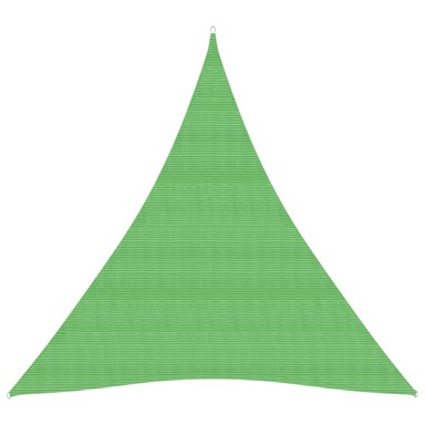 Napravite mali zaklon od sunca gdje god želite uz ovo sjenilo od HDPE-a. Idealan je suncobran koji se može upotrebljavati na bilo kojem otvorenom prostoru poput vrta, terase, igrališta ili balkona. Ovo jedro protiv sunca, napravljeno od 100 % HDPE-a (polietilen visoke gustoće), štiti vas od izravne sunčeve svjetlosti, omogućuje dovoljno vjetra i vodopropusno je. HDPE je posebno obrađen, tako da je otporan na plijesan i UV zrake. Sjenilo se lako sastavlja pomoću pričvršćivača od nehrđajućeg čelika u svakom kutu te uključenih konopa. - Boja: Svjetlozelena - Materijal: HDPE - Veličina: 5 x 6 x 6 m - Oblik: Trokutasta - Približno 90 % UV zaštite - Propušta vjetar i vodu - Otporno na plijesan i UV zrake, prozračni HDPE - Pričvršćivači od nehrđajućeg čelika u svakom kutu - Uključen PE konop od 3 x 1,5 m