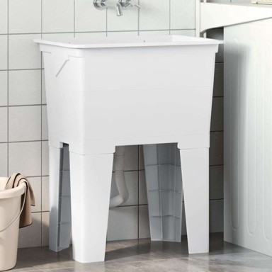 Samostojeća kadica za rublje izrađena od 100 % polipropilena praktično je i izdržljivo rješenje za unutarnju i vanjsku uporabu. Lagana i otporna na udarce, pogodna je za upotrebu u kućanstvu, vrtu, garaži ili radionici. Integrirani otvor za zaštitu od prelijevanja sprječava izlijevanje vode, dok dodatna posuda za sapun i daska za pranje osiguravaju dodatnu funkcionalnost. Zapremnina od 36 litara omogućuje jednostavno ispiranje i ručno pranje rublja ili alata. Dimenzije kadice su 59 x 41 x 75 cm, a bijela boja lako se uklapa u različite prostore. Isporuka uključuje sve potrebne dijelove za sastavljanje.