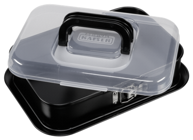 Kalup za tortu pravokutnog oblika, dimenzija 35 x 24 cm, s transportnim poklopcem, svojom neodvojivom pločom za prijevoz i neupadljivim premazom omogućava jednostavno izv... Pročitaj više