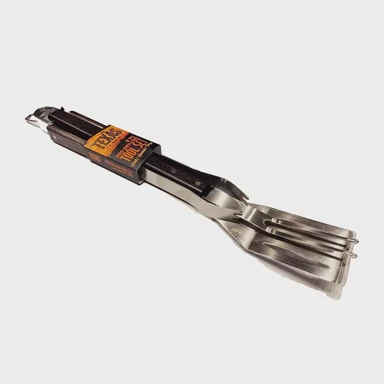 “Texas Club” Neizostavan trio alata za roštilj u jednom setu: spatula, hvataljka i vilica za roštilj. Od iznimno velikih odrezaka ili peradi do relativno malih morskih plodova, ribe ili pljeskavica, ovaj set vam omogućuje praktično uklanjanje, postavljanje i preokretanje svih jela s roštilja. Alati su izrađeni od nehrđajućeg čelika, a ručke od hrastovine. Lako se čiste. Set uključuje tri osnovna alata za roštiljanje – lopaticu, hvataljke i vilicu, pružajući cjelovito rješenje za rukovanje i pripremu raznih vrsta hrane na roštilju.