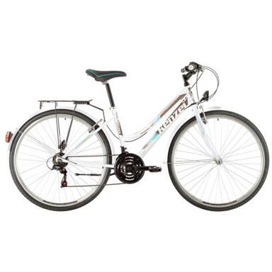 Trekking bicikl brenda Kenzel s donjom ramom idealan je za udobnu i dugotrajnu vožnju na različitim vrstama terena. Konstrukcija s niskim ulazom olakšava svakodnevnu upotrebu i čini ga pristupačnim za širu skupinu vozača. Gume promjera 28 incha osiguravaju stabilnost i pouzdanost na asfaltu i laganim makadamima. Zahvaljujući pouzdanoj opremi i praktičnom dizajnu, pruža sigurnost i udobnost tijekom vožnje, dok bijela boja naglašava njegov moderan i svestran izgled.