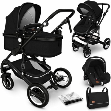 KIDUKU Kombinirana dječja kolica 3u1 Crna/Crna