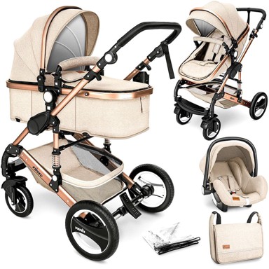 KIDUKU kombinirana kolica 3u1 bež trokombinacija su koja uključuje duboku košaru, sportsko sjedalo i autosjedalicu. Bež boja stvara nježan i neutralan izgled prikladan za svaku opremu. Višenamjenska konfiguracija omogućuje korištenje od rođenja do kasnijih godina djeteta.
