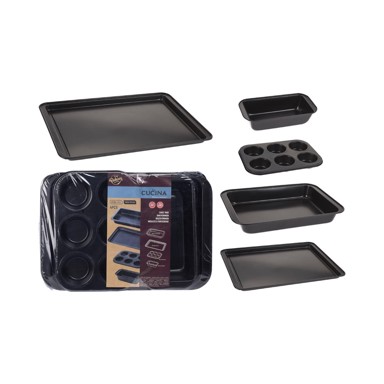 Ispecite najukusnije pite i kolače s ovim setom od 4 kalupa za pečenje koji obuhvaća sve što vam je potrebno. Uključuje kalup za muffine, lim za kekse, kalup za kruh i pravokutni kalup za tortu.