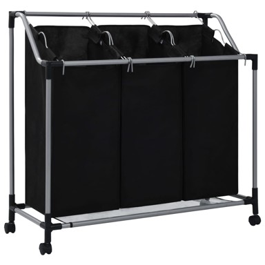Zamislite koliko bi energije uštedjelo i koliko bi bilo praktično držati vašu prljavu odjeću organiziranom te kako biste je lako prenijeli u svoju praonicu rublja. Naša košara za rublje, jednostavna za uporabu, to vam omogućuje! Ova košara za razvrstavanje rublja dobro organizira bilo koju praonicu rublja, pomoćnu prostoriju ili ormar, što je čini savršenim izborom za zadovoljavanje vaših pojedinačnih potreba. Ima tri vreće za razvrstavanje pune veličine, koje se mogu lako izvaditi radi prenošenja rublja pomoću čeličnih ručki za nošenje. Osim toga, kotačići i ručke na svakom kraju kolica idealni su za olakšavanje kretanja. Izdržljivi čelični okvir podnosi velika opterećenja rubljem, do 20 kg. Također se lako sastavlja i održava. - Boja: Crna - Ukupne dimenzije: 96 x 40 cm (D x Š) - Materijal okvira: Čelik i plastična obloga - Materijal vreća za rublje: Netkani - Visina prednje strane: 73 cm - Visina stražnje strane: 92 cm - Broj vreća za rublje: 3 - Maksimalno opterećenje: 20 kg - Neto težina: 2,95 kg - Tkanina: Poliester: 100%